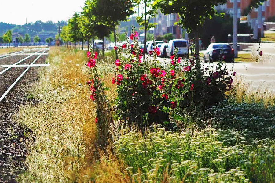У Вінниці та інших українських містах також впроваджуються сталі NbS-практики –зокрема, засівання різнотрав’я вздовж доріг замість газонної трави та відмова від регулярного косіння. Це зменшує ризики пожеж і перегріву узбіч, а також допомагає в утриманні опадів.