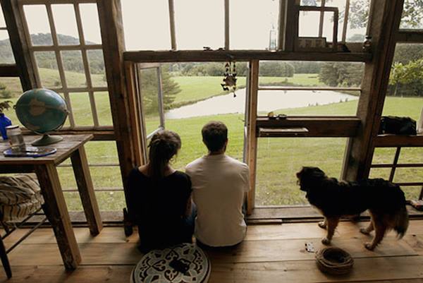 “Ця ідея прийшла нам в голову на одному з перших наших побачень. – Говорить Лайла. – Я, як і раніше, жила в Нью-Йорку, і Нік привіз мене до Західної Вірджинії. Ми сиділи на пагорбі, де будинок знаходиться зараз, і почали уявляти, яким чудовим буде захід сонця, якщо спостерігати його зсередини будинку через вікно на всю стіну. Ми намалювали невеличкий ескіз і з часом з’явився дизайн будинку.”