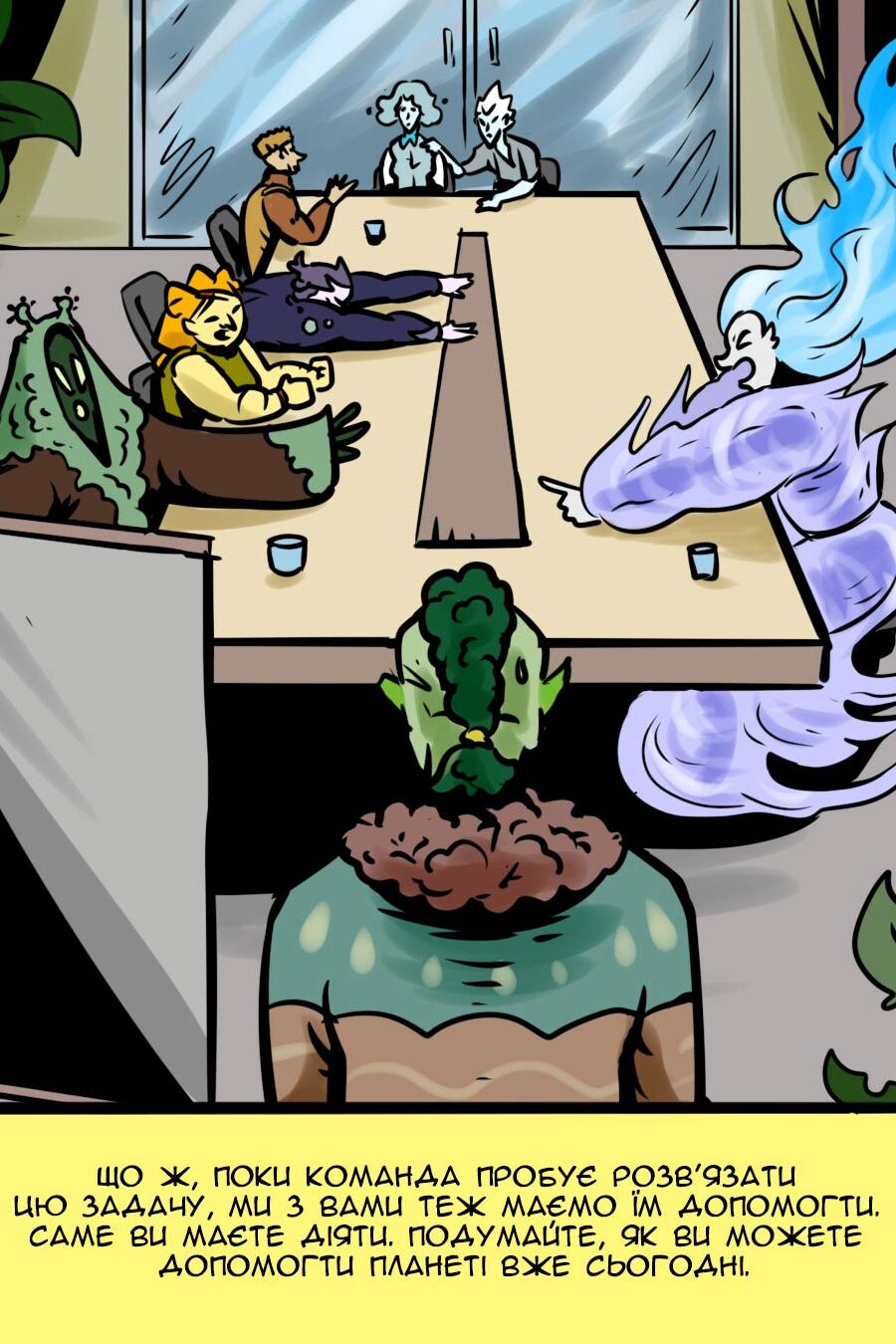 У другому випуску події загострюються: Ліс панікує через пожежі, Атмосфера перевантажена і не читає листів, Пустеля пропонує радикальні рішення, а Арктика й Антарктика нагадують, чим закінчився останній «редизайн» планети – Льодовиковим періодом. Герої разом намагаються придумати, як зробити так, щоб врятувати Землю.