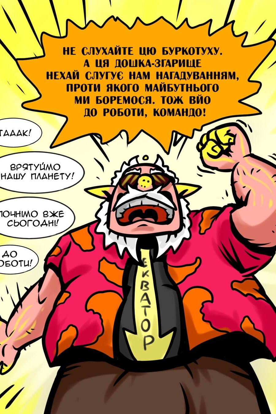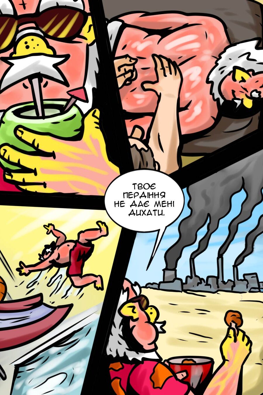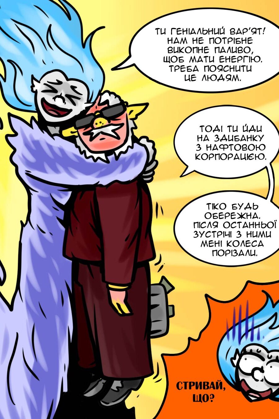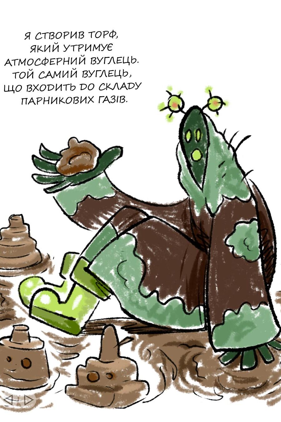 Також у мальописі наголошено, що спалювання викопного палива — вугілля, нафти та природного газу — є головним джерелом парникових газів. Під час горіння в атмосферу потрапляє передусім вуглекислий газ (CO₂), а також метан і закис азоту. Через зростання концентрації парникових газів підсилюється природний парниковий ефект, і середня температура на планеті підвищується.