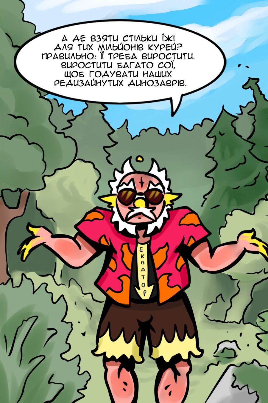 Третій випуск присвячений темі вирубки лісів задля збільшення площ сільськогосподарських земель – пасовищ та полів. За даними ФАО, у світі щороку вирубують близько десяти мільйонів гектарів лісу, що дорівнює площі Португалії. Й 6,4 – 8,8 мільйона га на рік цієї вирубки відбувається в тропіках, що вже призвело до того, що тропічні ліси Амазонки продукують більше вуглекислого газу, ніж можуть поглинути, що поглиблює кліматичну кризу.