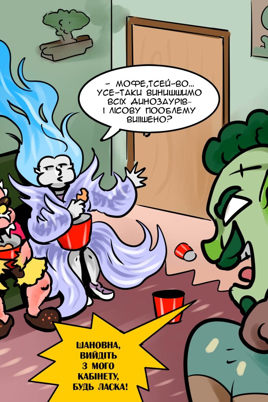 Перший випуск – це знайомство з командою Офісу, яка, як і ми всі, трохи втомилася, але продовжує працювати. Все починається з кадрів планети Земля – прекрасного «проєкту», яким мільйони років опікуються герої коміксу. З появою людства проєкт пішов трохи не туди. Тепер персонажі влаштовують мозкові штурми, сперечаються, жартують і пробують не з’їхати з глузду – все як у звичайному офісі.