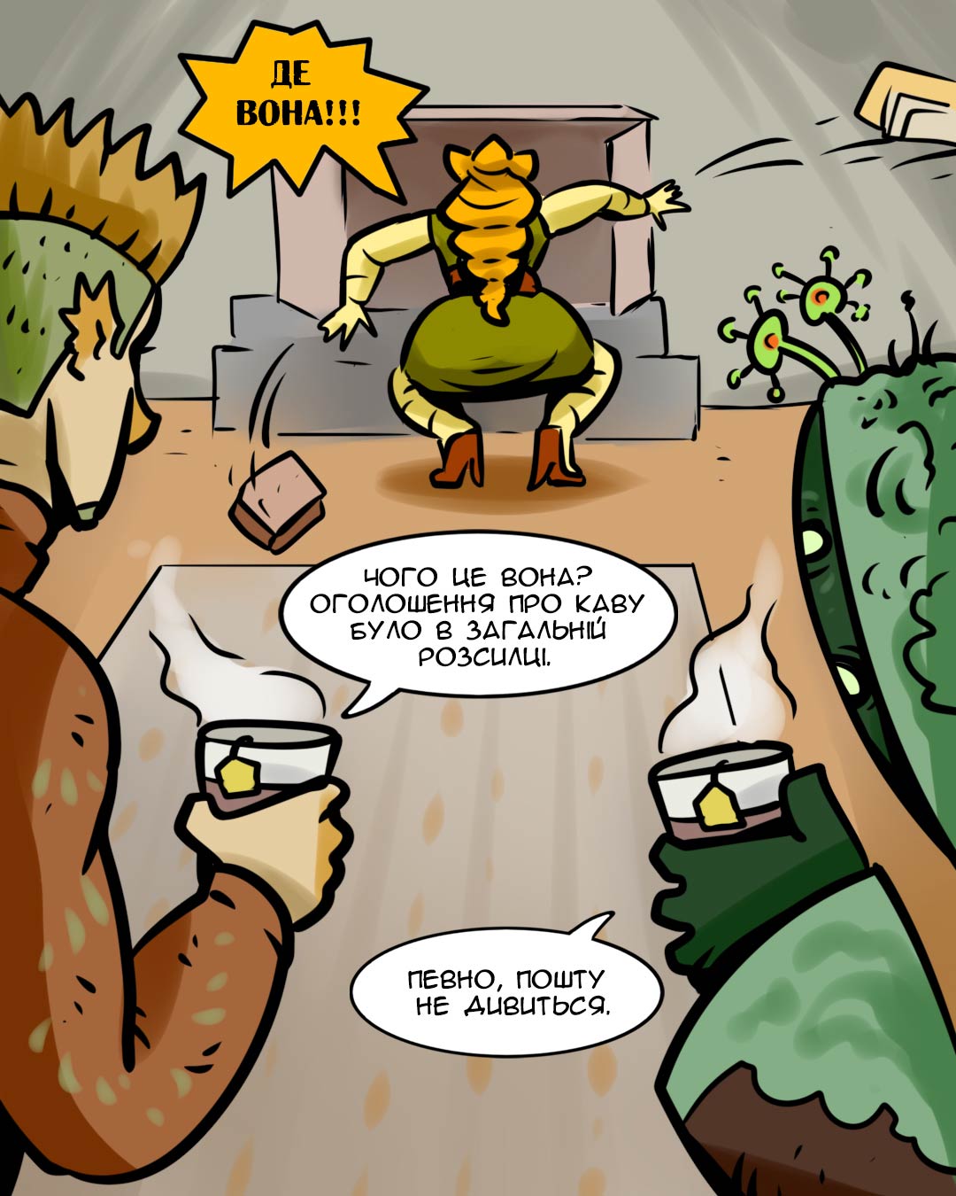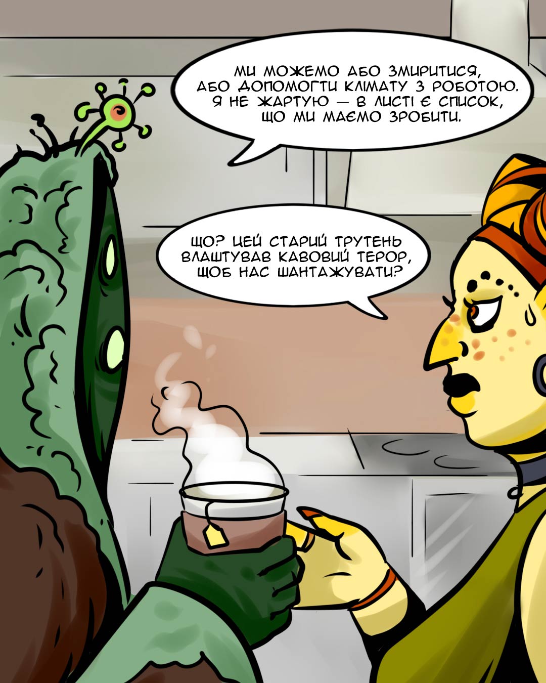 У новому, шостому випуску кліматичного мальопису «Горять дедлайни», працівники Офісу підтримки життєдіяльності людства стикаються з кавовою кризою.