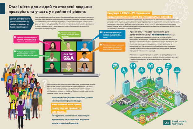 DetailsІнфографіка 1. Що таке сталий розвиток міст? Які фактори та елементи інфраструктури впливають на сталий розвиток міст? Завантажити (PDF) Інфографіка 2. Чому сталий розвиток міст неможливий без доступу до інформації та участі громадськості у прийнятті рішень? Завантажити (PDF) Інфографіка 3. Місто для кожного і для кожної. Чому участь жінок важлива для формуванні міського…