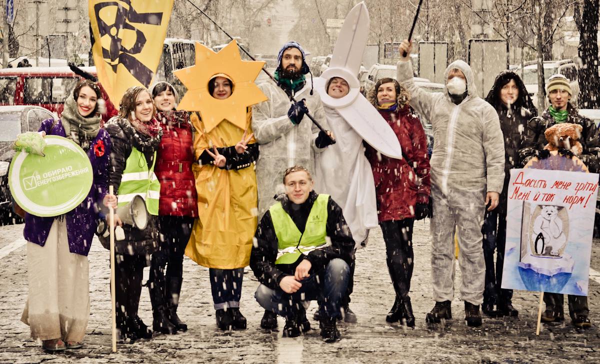 - У респіраторних масках та костюмах білих ведмедів ми вивісили на перилах Повітрофлотського шляхопроводу у Києві 10-метровий плакат із написом «Зупини зміну клімату», звертаючись до водіїв і Міністерства інфраструктури України